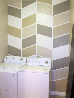 Ashley from Design Build Love didn't do a piece of artwork for her wall, she did her whole laundry room wall in the herringbone design.